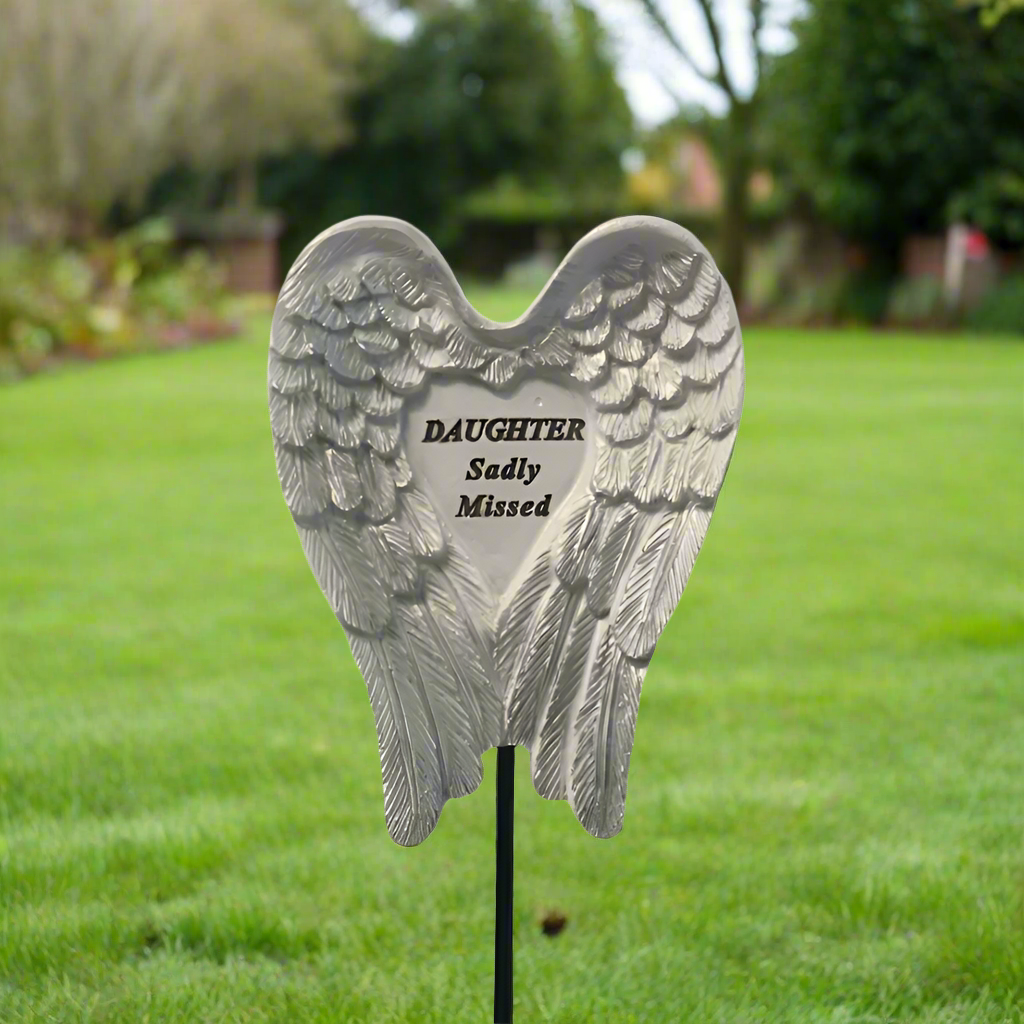 Daughter - Angel Wings Memorial Plaque on Stake - Ideal for Gravesides and Gardens