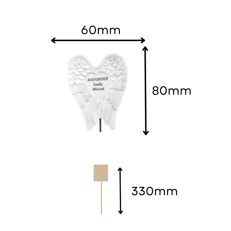 Our Daughter - Angel Wings Memorial Plaque on Stake is a heartfelt tribute designed to honour the memory of a beloved daughter. Featuring a beautifully crafted angel wings design, this memorial plaque symbolizes protection, love, and eternal remembrance. Made from durable, weather-resistant materials, it comes on a sturdy stake for easy placement in outdoor settings, ensuring it remains a lasting tribute.