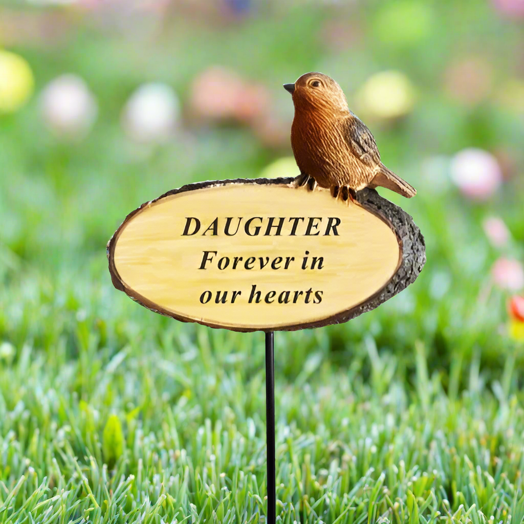 Daughter - Perched Robin Memorial Plaque on Stake - Loved and Missed Every Day - Ideal For Gravesides and Gardens