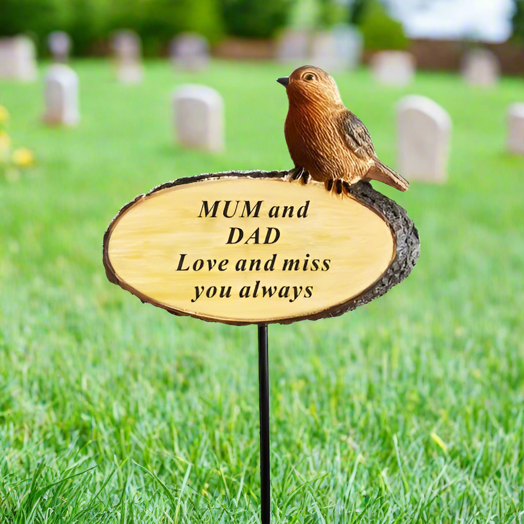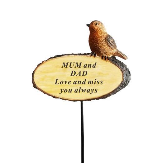 Mum & Dad - Perched Robin Memorial Stick - Love and Miss You Always - Ideal For Gravesides and Gardens