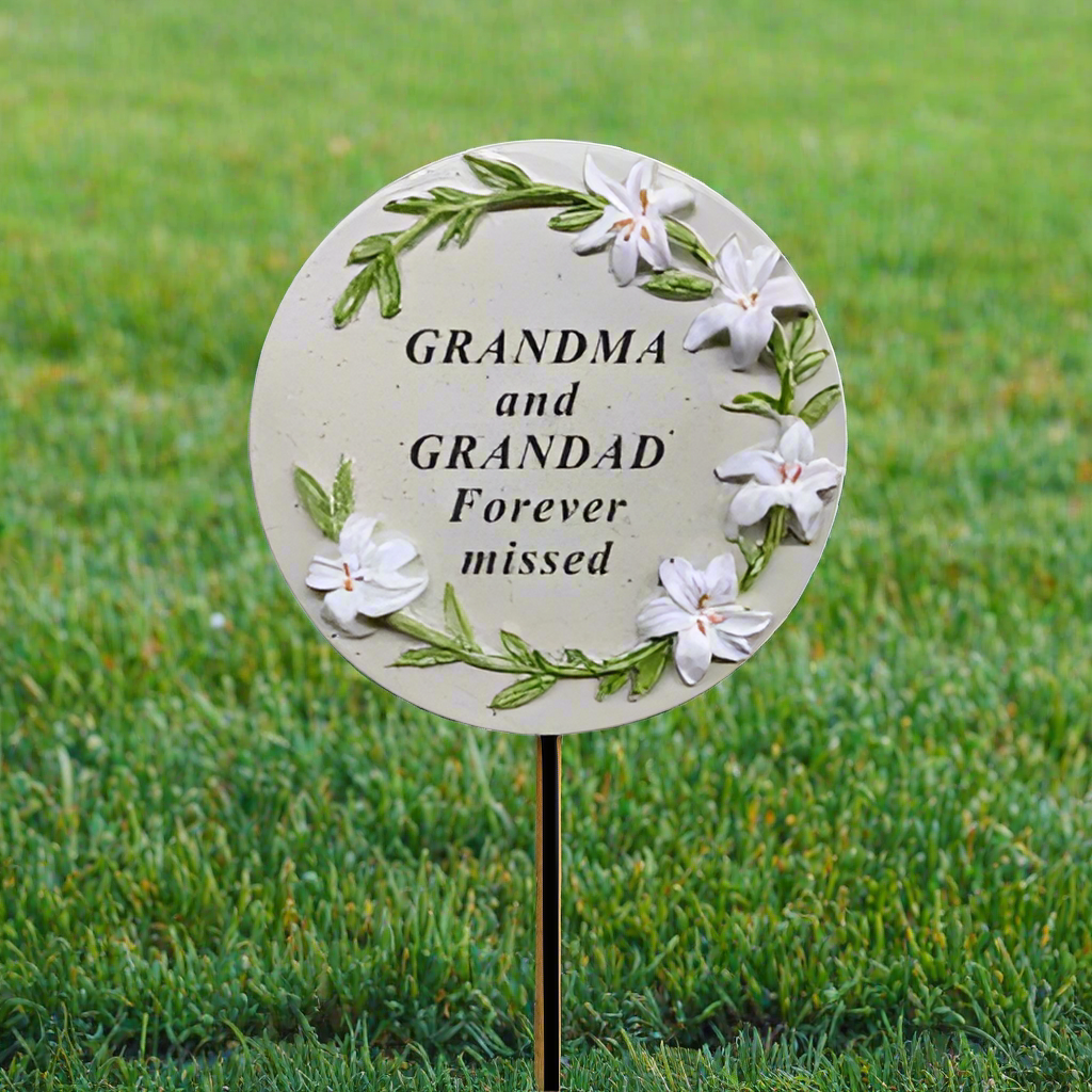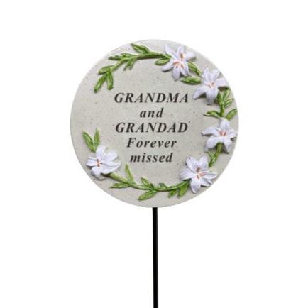 Grandma & Grandad - Memorial Stick - Grey With Floral Detail - Ideal for Gravesides Or Gardens